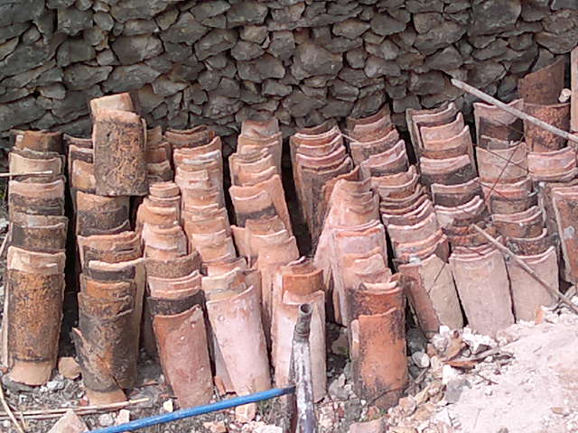 -Lo más impresionante fue la colocación de las tejas viejas existentes, hechas a unos 500 m. de allí, en el barranco de la tejería (donde están los restos de una de las tejerías más antiguas de Castellón) y según mi información, fueron transportadas por burros desde allí hasta las casas.