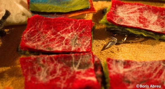 Feltai recoge la lana, se la da a las mujeres de las zonas rurales para que la laven de manera sostenible con una técnica adaptada de la zona austral y se carda. Luego trabajamos bajo pedido haciendo diferentes productos como zapatillas para casa, relleno de cojines o ropa para diseñadores. Depende de la calidad de la lana. A veces sumamos otras lanas de origen merino español, de colores o en crudos y hacemos talleres para enseñar técnicas de fieltro haciendo hadas, juguetes o complementos.