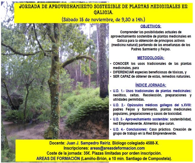 Evento para comprender las posibilidades actuales de aprovechamiento sostenible de plantas medicinales en Galicia para la ontención de los principios activos (mediciana natural) partiendo de las enseñanzas de los Padres Sarmiento y Feijoo.