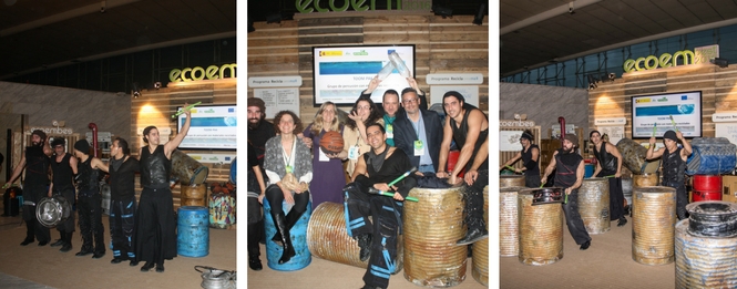El grupo de percusión con materiales reciclados Toom Pak compartió con el público asistente una sorprendente actuación con ingeniosos instrumentos que además de entretener, concienció y animó al público a reciclar.