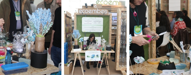 La artista Rosa Montesa realizo una demostración en directo de reciclaje creativo con envases, materiales de Ecoembes y recogidos en CONAMA.
