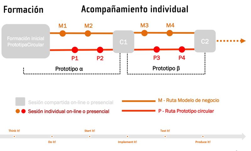 Después del taller de formación se realizará un proceso de acompañamiento con mentores especializados que durante varios meses acompañarán y asesorarán a los emprendedores participantes de forma individualizada y personalizada, ayudando a fortalecer y evolucionar sus modelos de negocio, acompañar la implementación y mejoras de los prototipos y facilitar contactos con actores claves. El acompañamiento se podrá realizar a distancia o de forma presencial en Barcelona.