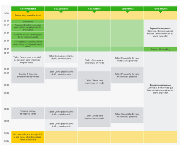 Para conseguir la meta principal de esta carrera, este I Maratón de Empleo Verde se ha diseñado como un espacio dinámico en el que se desarrollarán diferentes actividades: