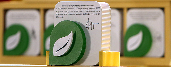 Durante el acto, la ministra ha firmado su compromiso con el empleo y el emprendimiento verde junto con representantes de los 69 proyectos beneficiarios de la convocatoria de subvenciones de 2017, en la que han resultado adjudicatarias 62 entidades. Isabel García Tejerina ha firmado el compromiso del Ministerio de “impulsar el Programa Empleaverde con el objetivo de crear 4.800 empleos, formar a 24.000 trabajadores y apoyar a 3.000 empresas y así, juntos, cuidar nuestro medio ambiente y promover una economía circular, sostenible y baja en emisiones”.
