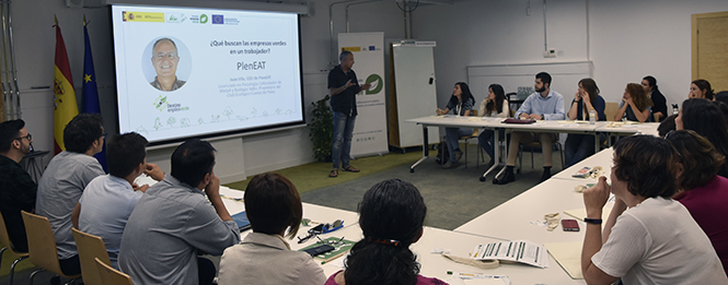 Además, durante la primera jornada, los asistentes han asistido a la charla “¿Qué buscan las empresas en una empresa verde?” a cargo de Javier Vila, un emprendedor reconocido, Licenciado en Psicología, cofundador de Meta4, Bodegas Aalto y propietario del Club Ecológico Cuesta de Patas, que ha trabajado en el área de RRHH de varias empresas. Y ahora CEO de PlenEAT, comedores de empresa, cátering y vending 100% bio. Ddesde su experiencia en Recursos Humanos de empresas reconocidas ha hablado de la identificación de competencias en la contratación de personas en una empresa verde entre las que destacan “la claridad, una aptitud proactiva y la habilidad para mostrar que somos la persona que están buscando”, explicó.