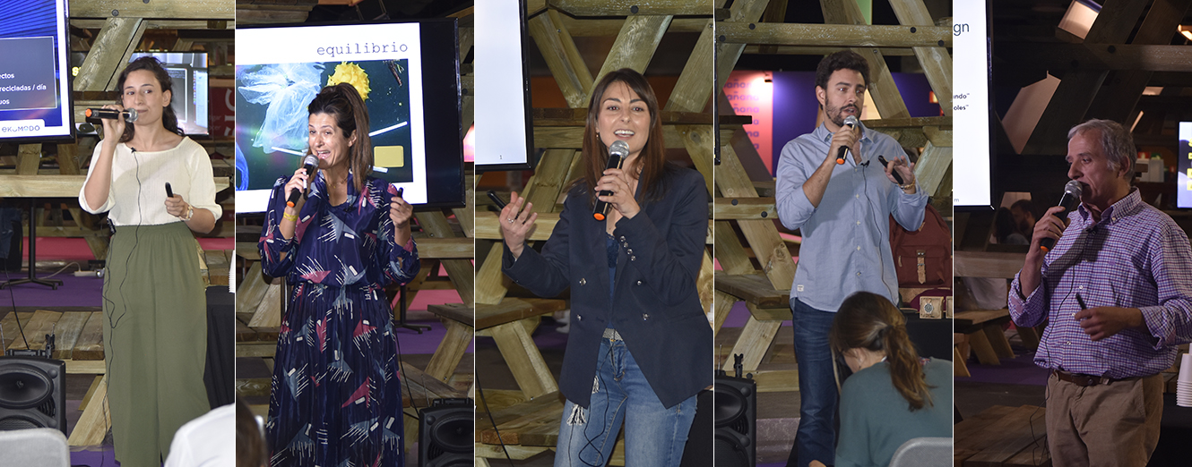 Guillermo Iñiguez, de One Oak destacó la importancia de la reforestación de bosques dañados por incendios con su modelo de fabricación gorras y relojes de madera y mochilas de plástico reciclado, corcho y madera y la plantación de un árbol por cada venta. En la misma línea del cuidado de los bosques José Luis Aranda de Sintala Design presentó sus productos de madera producidos con especies provenientes de árboles caídos, podas y otros procesos de fabricación. Catalina Truijillo cerro la propuesta de la Red emprendeverde con su proyecto Souji que recicla y reutiliza aceite usado y lo convierte en jabón.