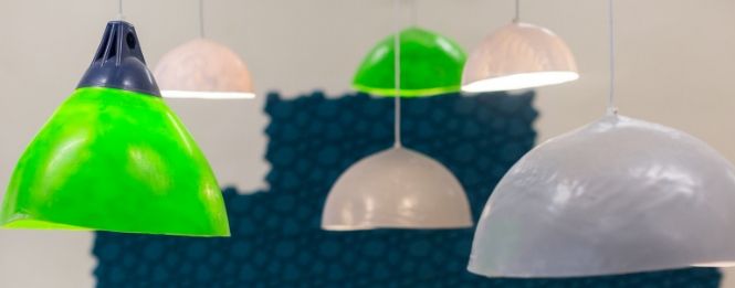 En el sector del mobiliario se mueve también Aiba Studio, lámparas hechas a partir de boyas defectuosas o inservibles, ya sea por fallos en la fabricación o por el deterioro causado por el uso.