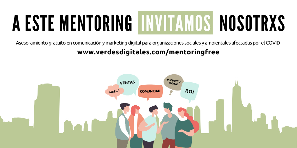 El equipo de Verdes Digitales regalará sesiones de mentoring estratégico en marketing digital y comunicación durante 3 meses a 12 organizaciones responsables (con proyectos sociales y ambientales) que se hayan visto afectadas por la crisis del COVID-19. Más información.