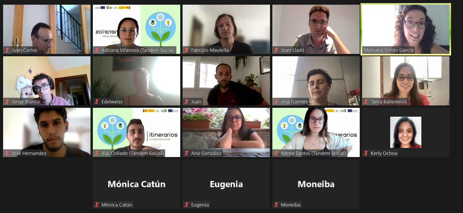 Las personas participantes de los #ItinerariosEmprendeverde han empezado a trabajar con el objetivo de definir y prototipar una idea de negocio (Itinerario de Ideación); validar, testear y madurar su proyecto de negocio para lanzarlo al mercado (Itinerario de Creación); y dar el último impulso a su proyecto (Itinerario Alumni). Durante estos tres meses seguirán estos objetivos a través de webinars formativos con personas especializadas, ponencias insipiradoras de personas emprendedoras consolidadas, módulos formativos y espacios de networking para la generación de sinergias.