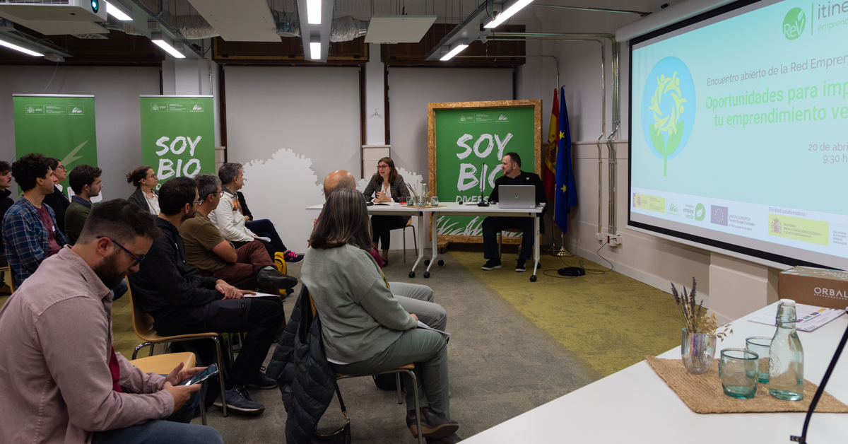 El encuentro se ha celebrado en el marco de los #ItinerariosEmprendeverde, el servicio gratuito de formación de la Red Emprendeverde (REV), cofinanciado por el Fondo Social Europeo, gracias al cual se han formado unas 500 personas (entre abril de 2021 y abril de 2023) interesadas en poner en marcha un emprendimiento verde.